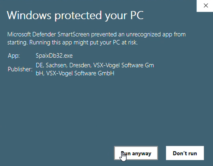 The Spaix applications are signed because the publisher “VSX” is listed. However, if we updated the certificate, enough trust has not yet been established, so the warning from SmartScreen appears. It will take a while before it can be executed without any warning. In the meantime, it should be possible to allow/unblock the message via the right-click context menu in the properties of the program files so that the message does not reappear every time:
